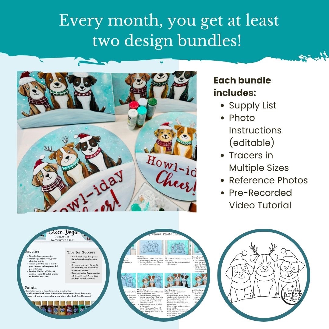 I recently joined the Artsy Moon Paint Club and it was THE best decision for my business. Karen’s designs, instructions, format, and love for painting has really helped me grow as a painter to better able to offer better quality paint parties!!!