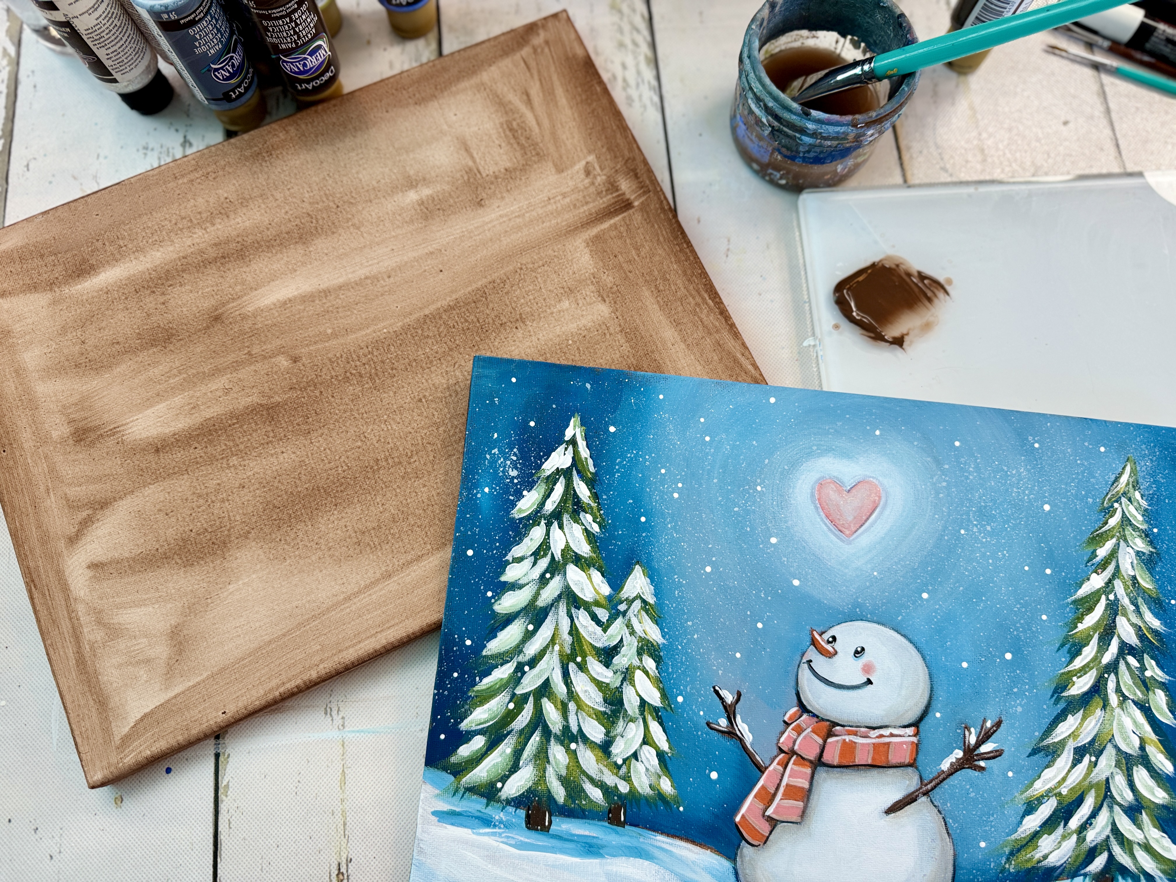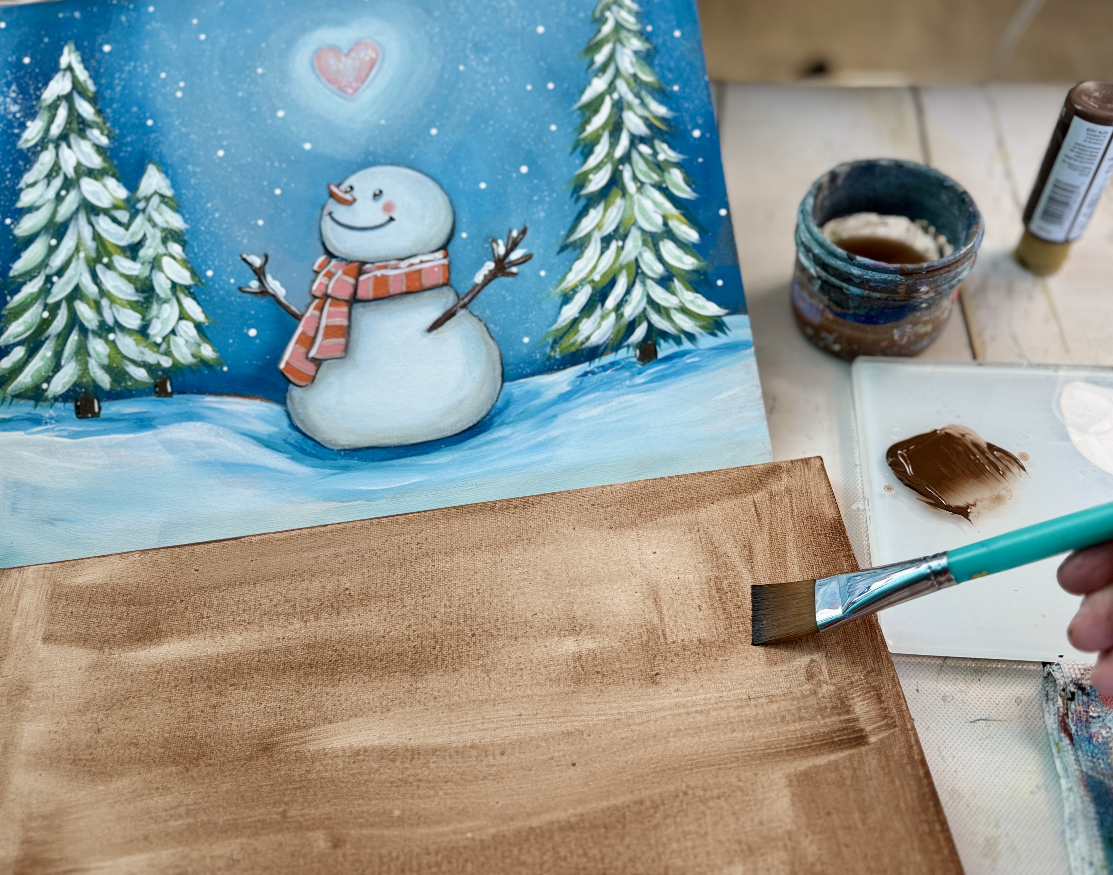 Now that you know why underpainting makes such a big difference, I’m excited to share how I actually do it. I’m a big fan of keeping things simple and this process is no exception. First, I grab a big brush and choose a color based on the mood I want for the painting. Depending on the look I am going after, I will either add a little water or keep it thick. Gently sweep the brush across the canvas, let it dry, and start painting. It really is that simple! You can make it darker, lighter, more intense, or more transparent depending on your goals, there’s really no wrong way to play.