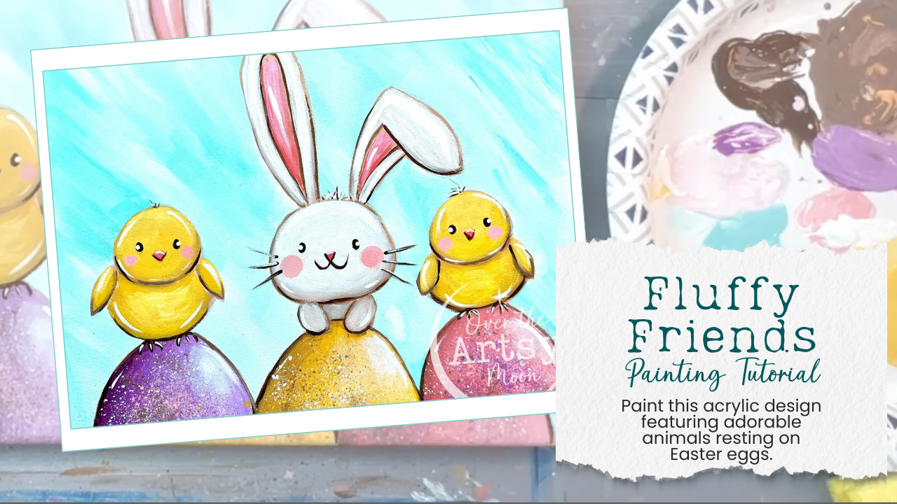 Add a burst of springtime charm to your home with “Fluffy Friends”! This adorable trio — a happy bunny and two sweet little chicks — sits atop sparkly, colorful Easter eggs, making it the perfect feel-good painting for the season. Karen walks you through each step so you can paint a bright, cheerful piece you’ll be proud to display or gift. A must-have tutorial for anyone who loves cute, colorful designs!