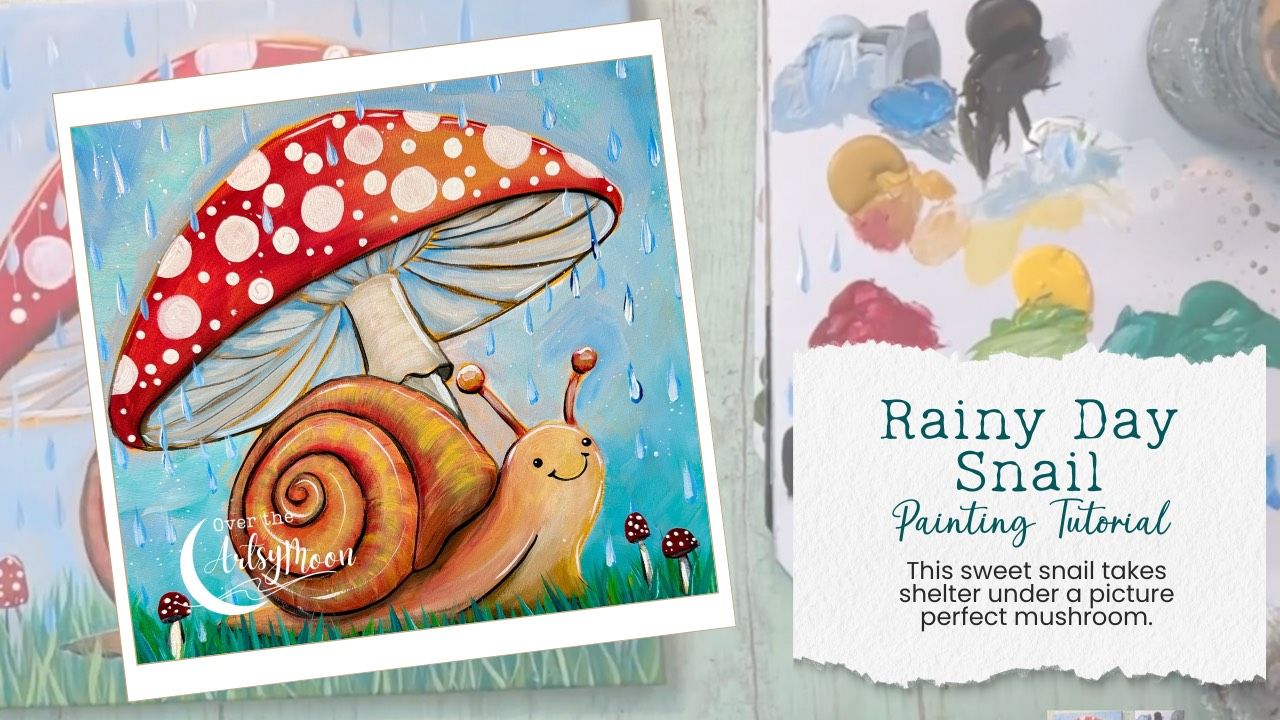 Make rainy days feel downright adorable with “Rainy Day Snail”! Paint this sweet little snail cozied up beneath a bright red mushroom as raindrops fall all around. With Karen’s easy, step-by-step guidance, you’ll create a whimsical scene full of charm, color, and personality — perfect for kids’ rooms, seasonal décor, or anyone who loves a touch of woodland magic.
