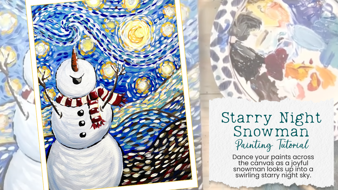 Create a winter masterpiece full of movement and joy with “Starry Night Snowman”! This whimsical tutorial blends a cheerful snowman with a dazzling, swirling night sky inspired by the classic Van Gogh style. Karen guides you step-by-step to capture the vibrant colors, playful brushstrokes, and sparkling winter magic — perfect for holiday décor, paint nights, or anyone who loves art with personality and cheer.