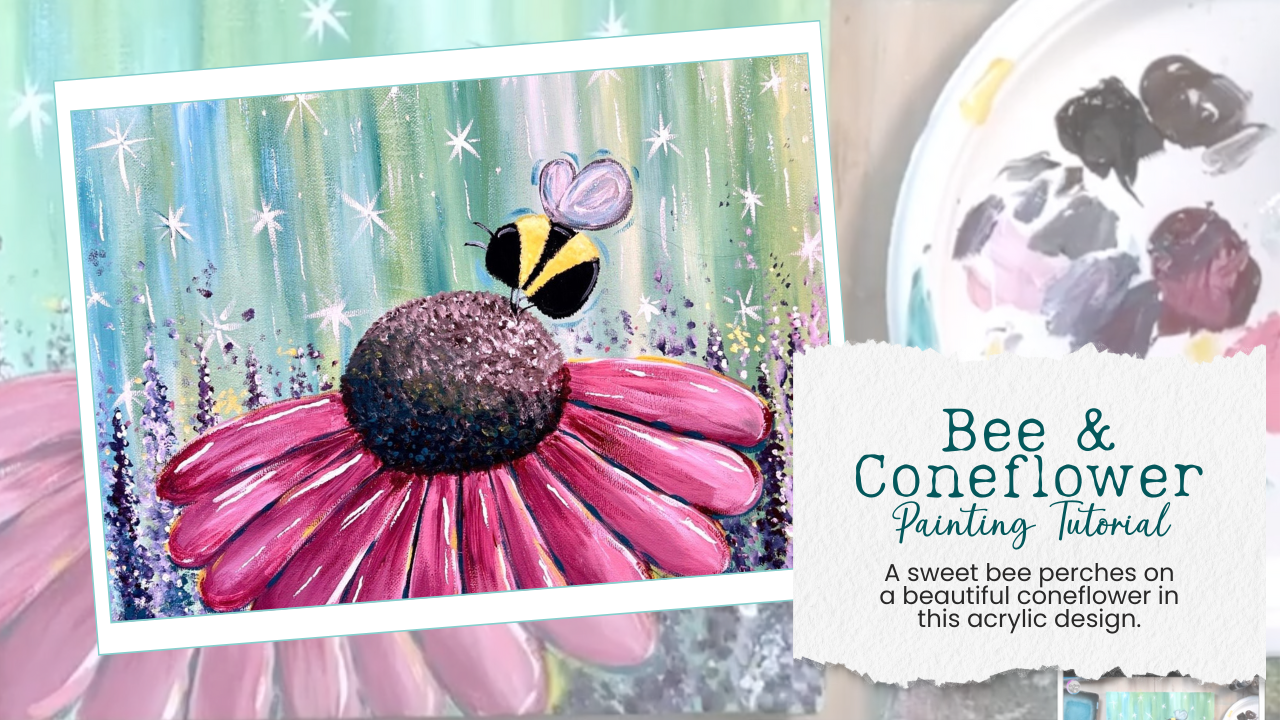 Buzz into creativity with our "Bee & Coneflower" Canvas Painting Tutorial! Capture the charm of a busy bee perched on a vibrant coneflower, perfect for adding a touch of nature to any space. Follow our step-by-step video to bring this lively scene to life with ease.