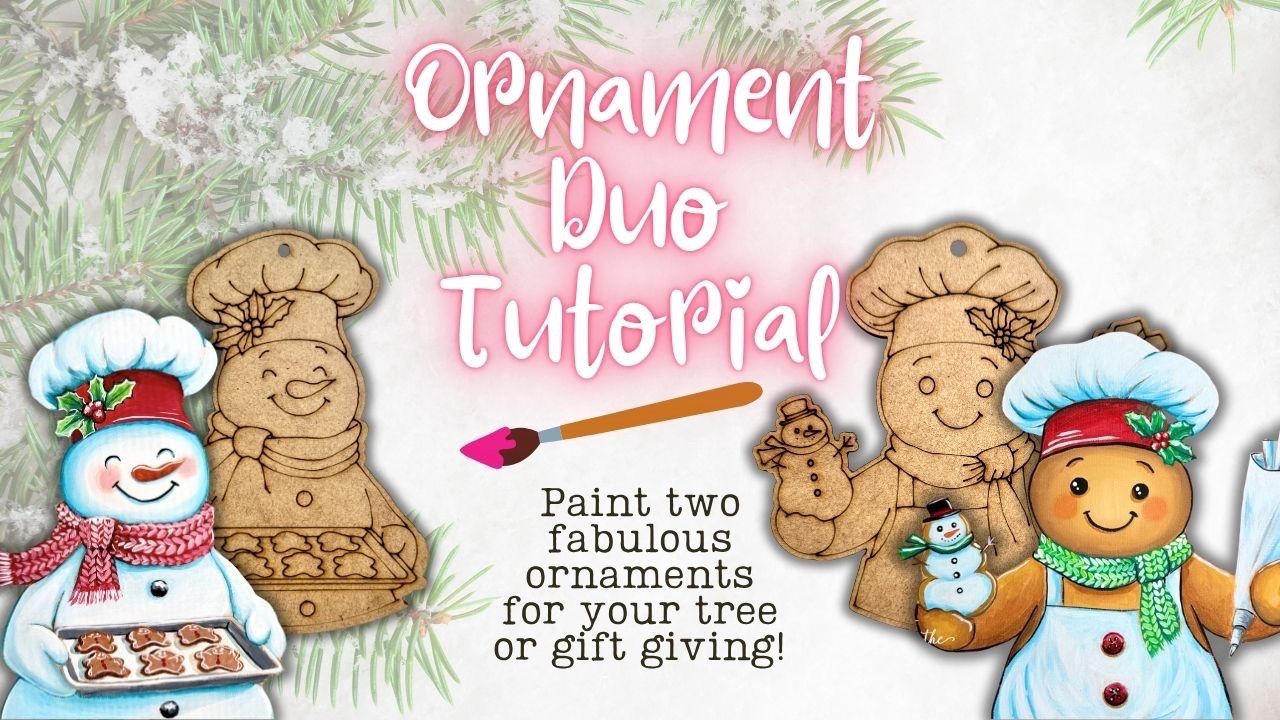 Bring extra holiday cheer to your tree—or create the perfect handmade gifts—with this adorable two-piece ornament bundle! In two festive tutorials, Karen walks you step-by-step through painting two charming 5" wood ornaments: A smiling snowman baker and a joyful gingerbread chef.