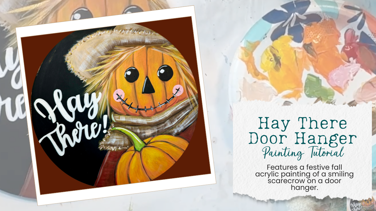 Greet your guests with a burst of fall charm using the “Hay There!” Door Hanger! This festive tutorial walks you through painting an adorable pumpkin-faced scarecrow, complete with rosy cheeks, straw details, and a bright autumn pumpkin. Karen makes it simple and fun to create a warm, welcoming piece that’s perfect for front doors, porches, entryways, or adding a cheerful seasonal touch to your home.