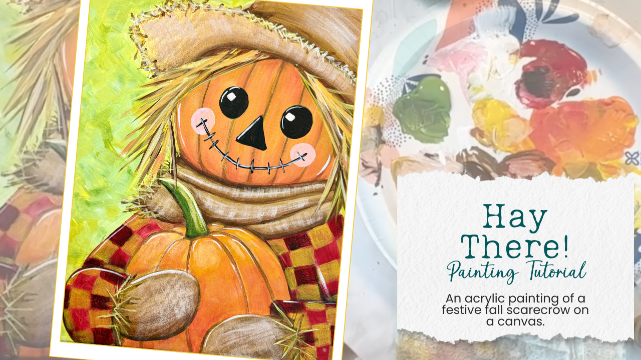 Celebrate the charm of autumn with “Hay There!” — a cheerful scarecrow painting on canvas that instantly brings cozy fall vibes to your home. With his pumpkin-orange face, stitched smile, and snuggly plaid scarf, this friendly character is irresistible to paint. Karen walks you through each step so you can create a vibrant, heartwarming piece perfect for fall decorating, gifting, or adding to your seasonal collection.